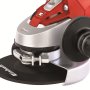 Dank seinem schlanken Gehäuse und dem Softgrip sowohl auf dem Hauptgriff als auch auf dem Zusatzhandgriff bietet der Winkelschleifer sehr hohen Bedienkomfort. Darüber hinaus lässt sich der in drei Positionen fixierbare Zusatzhandgriff optimal auf das jeweilige Werkstück einstellen und gewährleistet damit zuverlässigen Halt für komfortables, sicheres Arbeiten. Der Stirnlochschlüssel wird im Zusatzhandgriff verwahrt, so dass er immer zur Stelle ist.