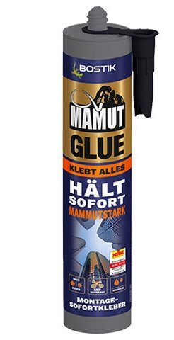 MAMUT GLUE ist ein qualitativ hochwertiger flexibler Montage-Sofortkleber mit extremster Anfangshaftung, extrem hoher Belastbarkeit und sehr hoher Endfestigkeit, basierend auf SMP Hybrid Technology, der unter Einwirkung von Feuchtigkeit zu einer dauerhaft elastischen Masse aushärtet. Hält sofort auch schwerste Materialien ohne mechanische Befestigung.