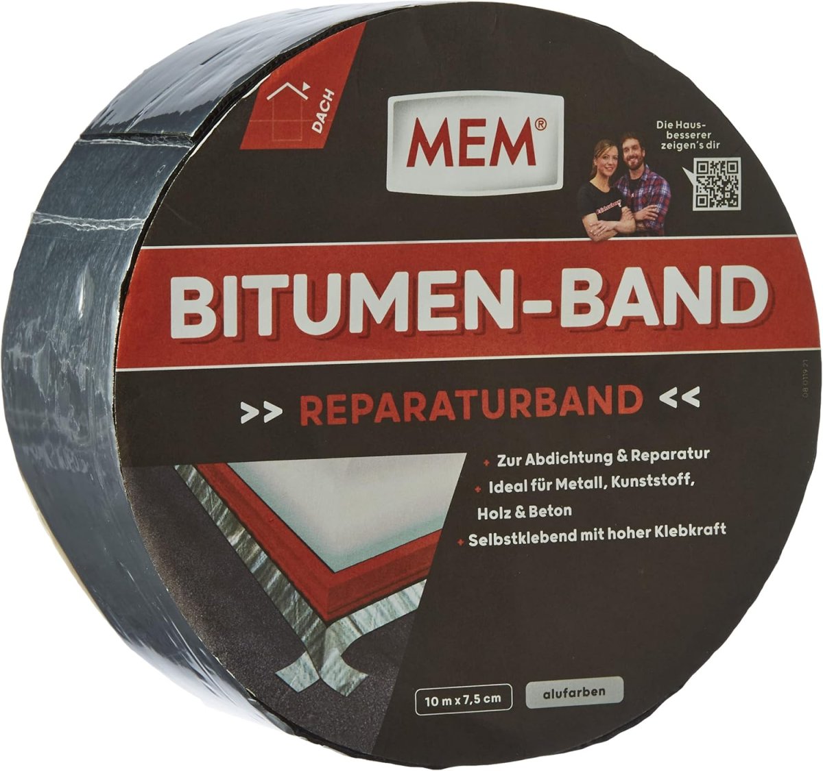 Das MEM BITUMEN-BAND ist ein selbstklebendes, alukaschiertes Bitumendichtungsband zur Abdichtung und Reparatur.