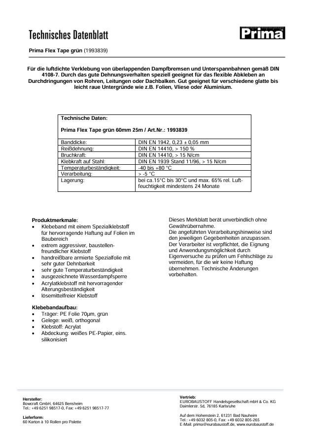 Shop » Detailansicht Prima FLEX TAPE - grün - 60 mm x 25 m
