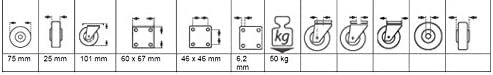 - Rad: Felge Kunststoff, Lauffläche TPE, Gleitlager und Fadenschutz aus verzinktem Stahlblech