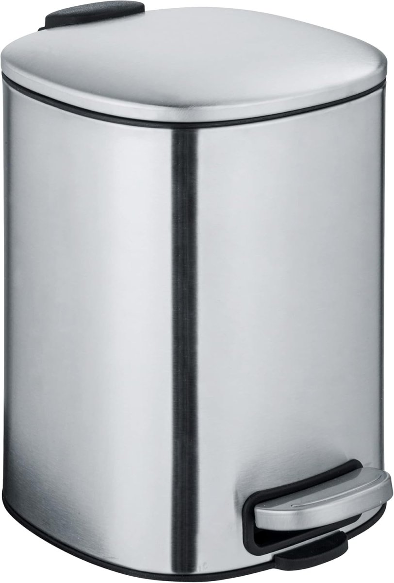 Der hochwertige Treteimer aus der Alassio-Serie von WENKO aus satiniertem Edelstahl überzeugt durch seine Qualität und sein mattes Finish.
