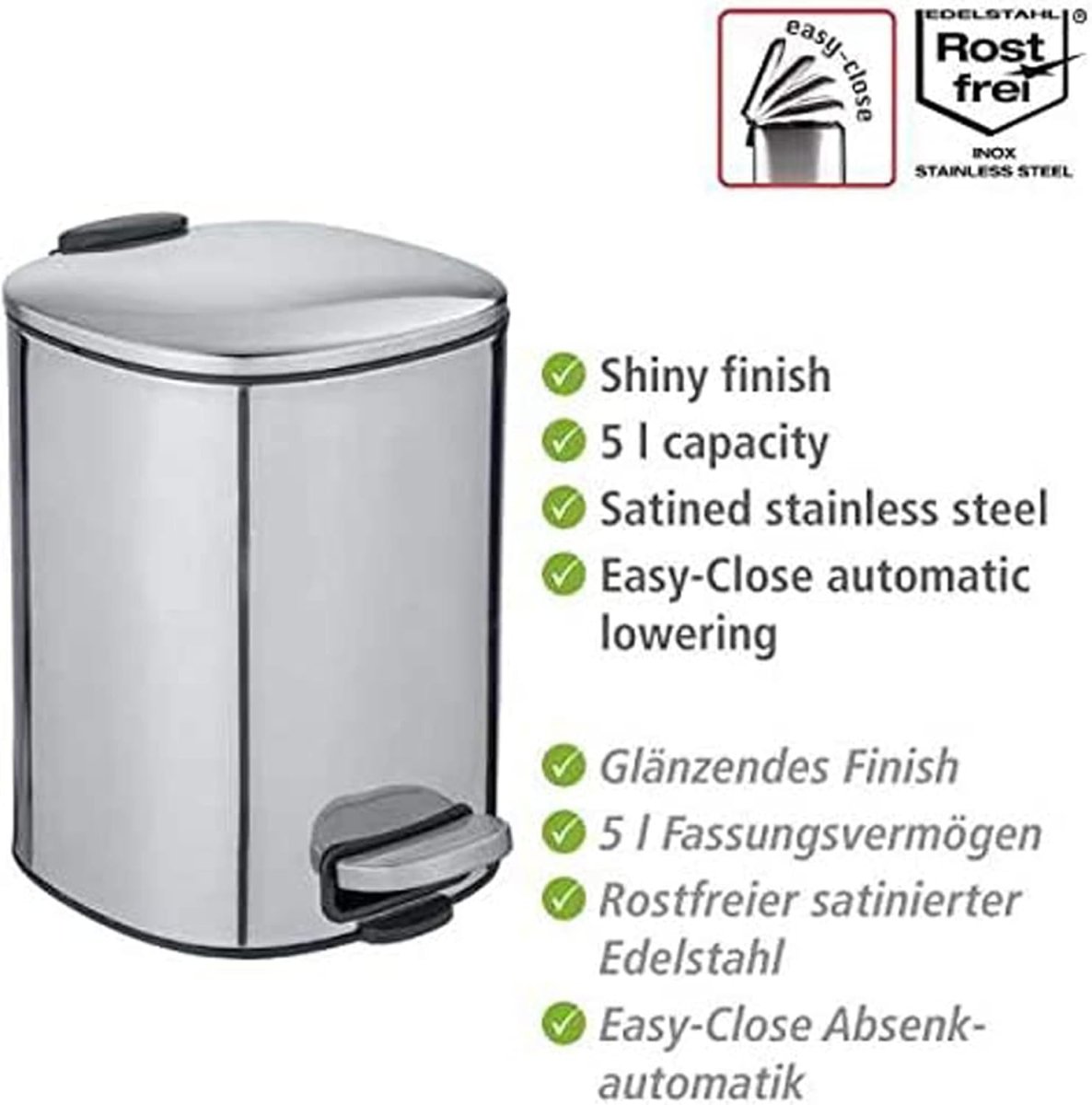 Die formschöne Pedal-Lösung macht diesen Tretmülleimer zu einem echten Hingucker im Bad und Gäste-WC. Mit der WENKO Easy-Close-Absenkautomatik ausgestattet schließt der Deckel ganz sanft und leise ohne lautes Aufknallen. Durch seine praktische Tretfunktion kann der Eimer ohne einen Handgriff geöffnet werden. Darüber hinaus schließt er wieder von selbst – das schont auch den Rücken!