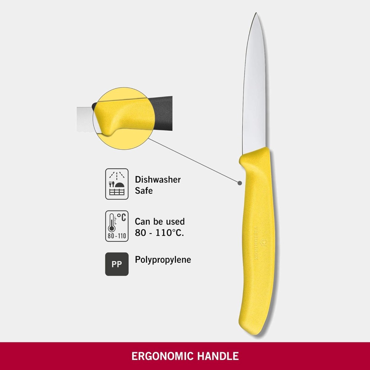 Dieses Gemüsemesser hat eine rostfreie Stahlklinge mit geradem Schliff und Mittelspitz. Dank Profi-Schärfe ist es ideal für vielfältige präzise Küchenaufgaben. Der leichte, ergonomische Griff wurde für optimalen Komfort und Kontrolle entwickelt. Das spülmaschinengeeignete Messer wird in der Schweiz hergestellt und bietet verlässliche Effizienz im Küchenalltag.