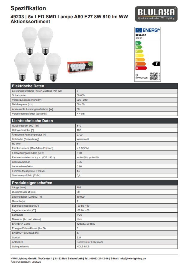 - Nutzlichtstrom 360°: 810 lm