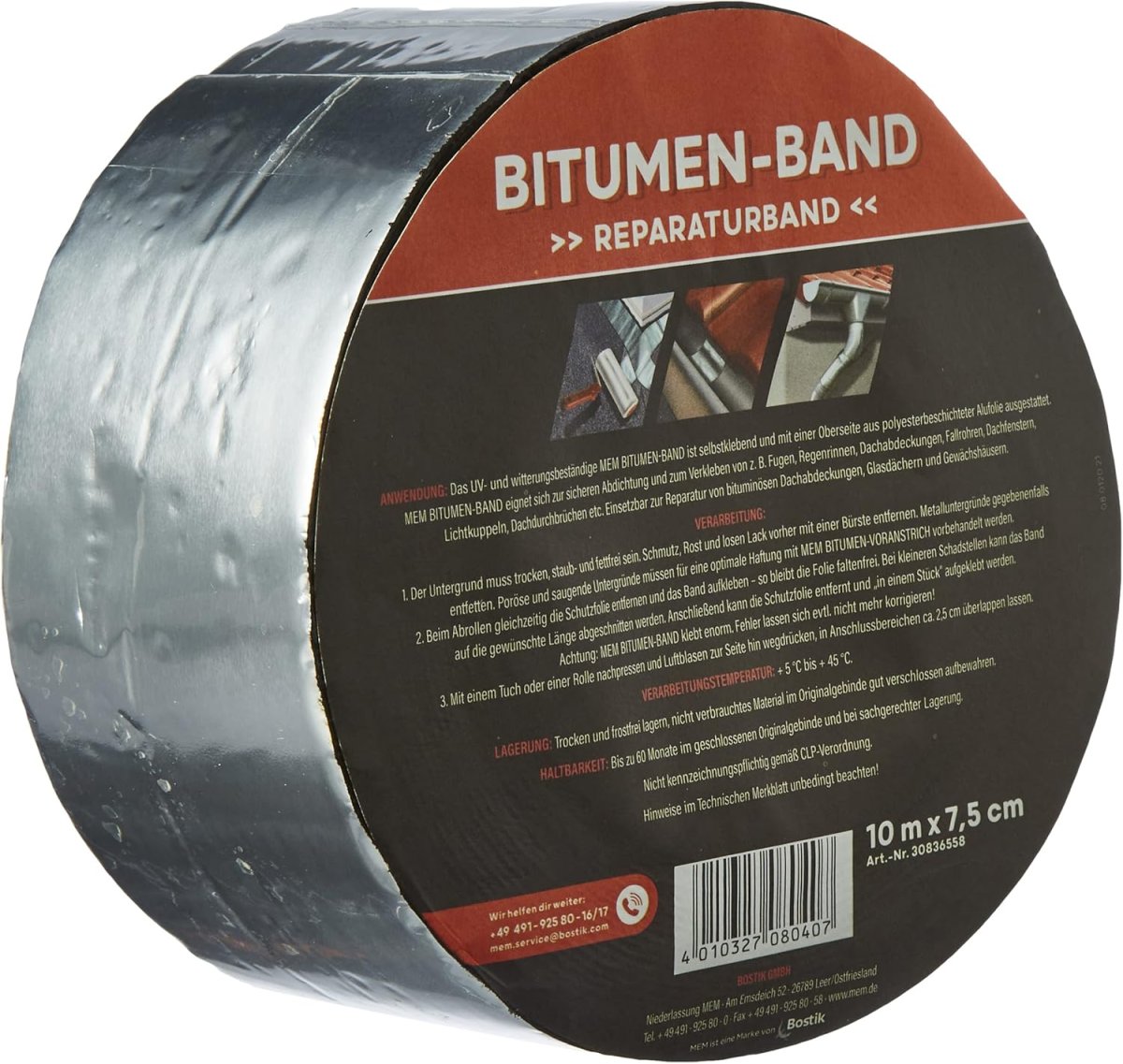 Das MEM BITUMEN-BAND ist ein selbstklebendes, alukaschiertes Bitumendichtungsband zur Abdichtung und Reparatur.